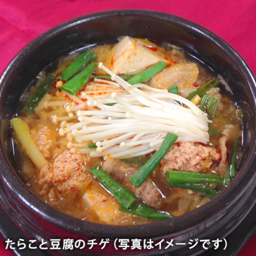 | メニュー | ○手羽先のピリ辛焼き(鶏手羽を特製旨辛タレで、カリッと揚げ焼きに) ○たらこと豆腐のチゲ(一度食べたら癖になる、おすすめのチゲ) ○柿のキムチ(韓国の柿の名産地でも食べられるキムチ) ○春菊のナムル(これから美味しくなる春菊を美味しいナムルに) ![]() |