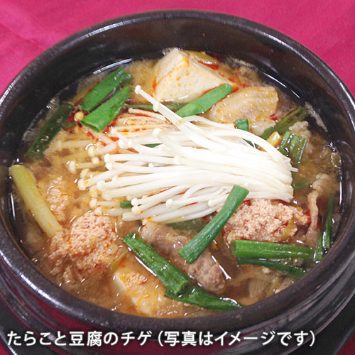 | メニュー | ◯たらこと豆腐のチゲ(一度食べたら癖になる、たらこと豚肉の旨味が効いた簡単チゲ) ◯手羽先の揚げ焼き(手羽先を特製旨辛タレで、カリッと焼きます) ◯大根とチャンジャのキムチ(旬の大根をチャンジャを使って旨味たっぷりキムチに) ◯春菊のナムル(これから美味しくなる春菊をナムルに) チャンジャキムチはお持ち帰りになります。 ![]() |